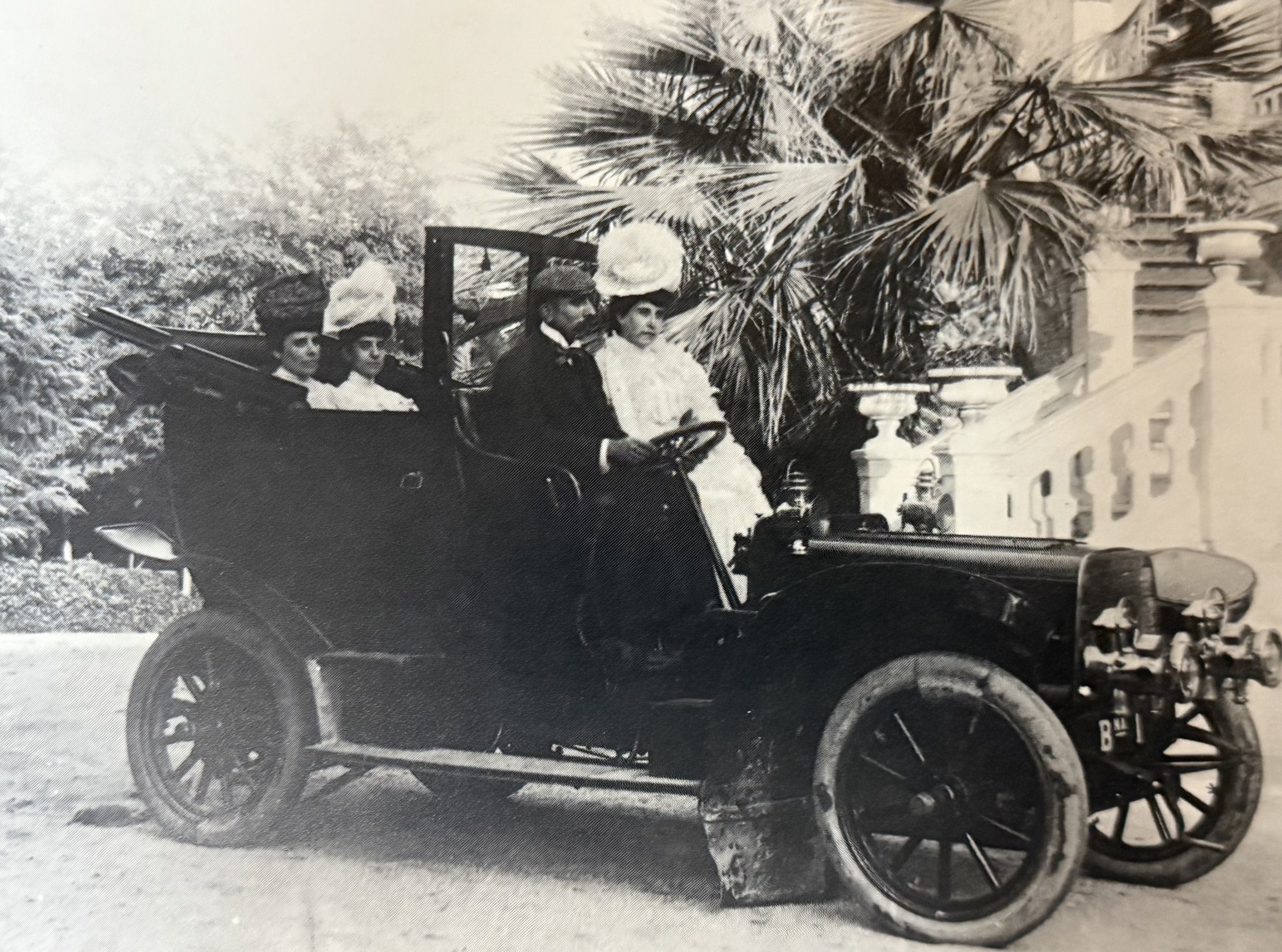Pocs anys després, el 1907, Josep Giró i Blanch, un industrial badaloní, es va convertir en el primer propietari d’un cotxe matriculat a Badalona. Es tractava d’un model Darracq, de fabricació francesa però carrosseria catalana. Aquell cotxe, símbol de progrés i luxe, es va convertir en un autèntic referent de la modernitat i l’ostentació social del moment. A la fotografia que il·lustra aquest article, es poden veure els fills del senyor Giró posant amb orgull al damunt del vehicle, testimonis directes d’un canvi que començava a transformar el paisatge urbà.