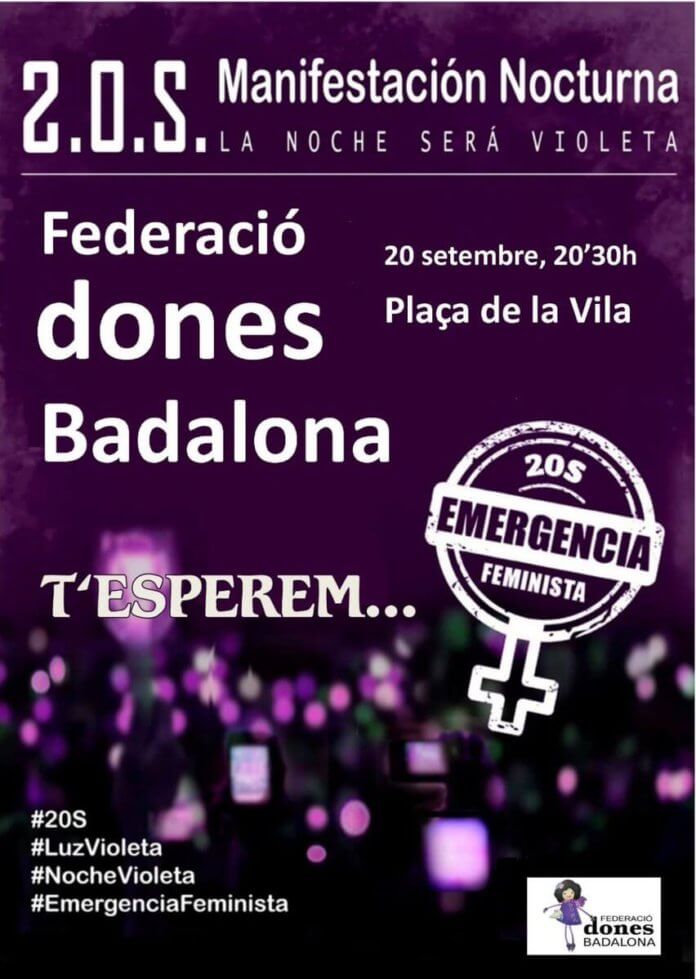 Aquest divendres, 20 de març, Badalona, Montgat i Tiana se sumaran a la manifestació #EmergènciaFeminista que tindrà lloc a tot l’Estat. A la ciutat, diverses entitats, com la Federació de Dones o la Comissió 8 de març s’han unit a la convocatòria. A Badalona, la concentració serà a les 20:30h, a la plaça de la Vila, organitzada per la Federació de Dones de Badalona, i també des de la plaça Trafalgar a la plaça de la Dona, organitzat pel Bloc Violeta. A Montgat i Tiana, a les 20:30h, s’han convocat concentracions a la plaça de la Vila dels dos municipis.