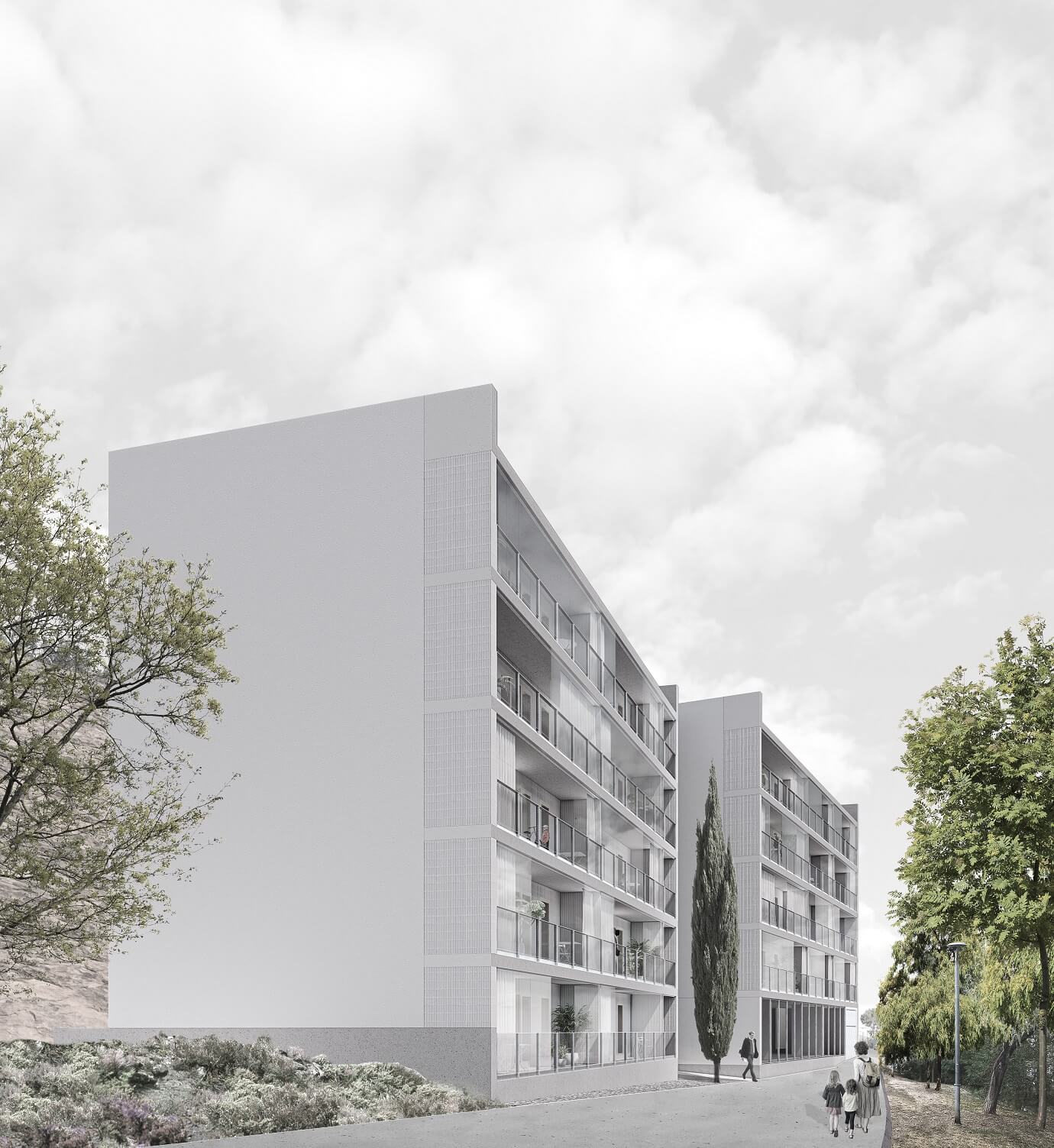 El primer edifici, que es construirà a la cota més alta de la parcel·la i tindrà una alçada de dos pisos, constarà de 17 habitatges i 17 places d’aparcament. El segon edifici, dividit en dos blocs, estarà situat a la cota més baixa de la parcel·la i tindrà una alçada de quatre pisos, constarà de 22 habitatges i 16 places d’aparcament. Els dos blocs estaran unificats per una passera exterior comuna a cada planta i connectats entre si pel nucli d’escales i ascensor. La sostenibilitat és un dels eixos prioritaris de la promoció, amb un compromís ferm de l’AMB per pal·liar l’emergència climàtica en l’àmbit de l’habitatge.