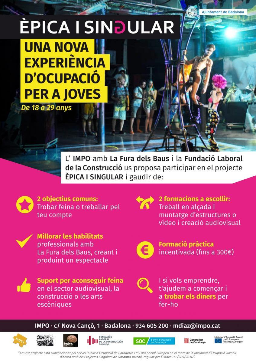 Aquesta col·laboració entre l’Ajuntament de Badalona, la Fura dels Baus i la Fundación Laboral de la Construcción compta amb la subvenció del Servei d’Ocupació de Catalunya (SOC) dins dels programes de Garantia Juvenil.