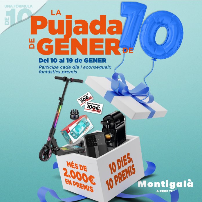 A més, i també en els seus canals de Facebook i Instagram, el centre comercial posa en marxa l’acció ‘Destí 2024’, per mitjà de la qual sortejarà una maleta en aquelles persona que comentin quina és la seva destinació favorita de viatge per a aquest nou any. El centre acollirà, a més, aquest divendres 12 i el dissabte 13, una original acció de la mà del projecte ‘Buidem’, en la qual les persones que ho desitgin poden adquirir per només 4 euros sobres sorpresa que contenen multitud de productes de talp tipus. L’horari és de 9 a 21 hores. D’altra banda, Montigalà realitza un sorteig fins al 19 de gener en la seva pàgina web sota el títol ‘Cuesta de gener de 10’, en el qual sortejarà més de 2.000 euros en premis, amb un guanyador cada dia. Per a participar en aquest sorteig, aquells que ho desitgin podran registrar-se cada dia i provar sort per a descobrir si els ha tocat un premi,