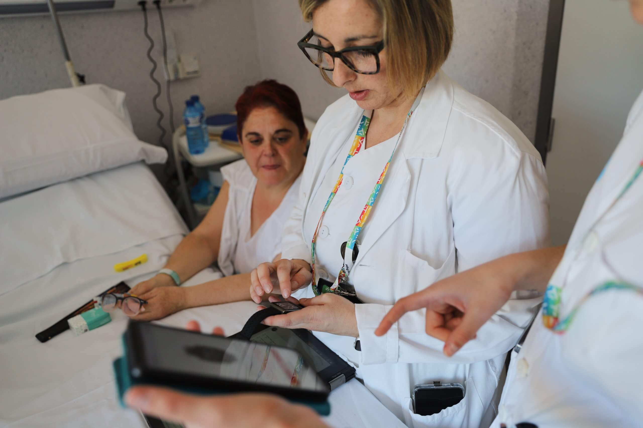 La primera pacient en disposar d’aquest dispositiu ha estat una dona derivada del Servei de Pneumologia a la Unitat d’Hospitalització a Domicili (HAD). D’aquesta manera, es preveu fer seguiment remot de les seves constants fisiològiques mentre estigui ingressada al seu domicili. El projecte contempla desplegar fins a mig miler de polseres per al seguiment de diferents perfils de pacients complexes, a més d’un centenar de monitors ‘sense fils’ –tipus petaca- a l’entorn hospitalari.