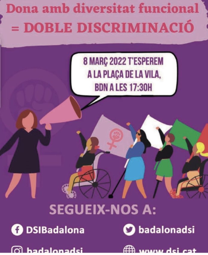 Aquest dimarts, 8 de març, Dia de la Dona, Badalona ha preparat nombrosos actes per commemorar la jornada. Enguany, des del TOT, hem volgut posar la mirada en les dones que tenen alguna discapacitat, i que pateixen una doble discriminació. Així de contundent s’ha mostrat la presidenta de la Fundació PAM, presència, accés i mobilitat, la badalonina Rosa Bové. L’accés de les dones amb alguna discapacitat al mercat laboral no sempre és fàcil, tal com reconeix Bové. A més, en alguns àmbits hi ha restriccions importants per aquestes dones, com per exemple el retard en el temps de les primeres experiències laborals. Bové, també fa una crida a les administracions a poder incorporar més dones amb alguna discapacitat al mercat laboral. Enguany, “Deixem de ser invisibles” presentarà un acte, dimarts 8 de març a les 11h a la plaça de la Dona, sobre la diversitat funcional en clau de genère. A més, l’entitat badalonina encapçalarà la manifestació unitaria, del 8M a les 18h des de la plaça de la Vila, convocada per diverses entitats badalonines.