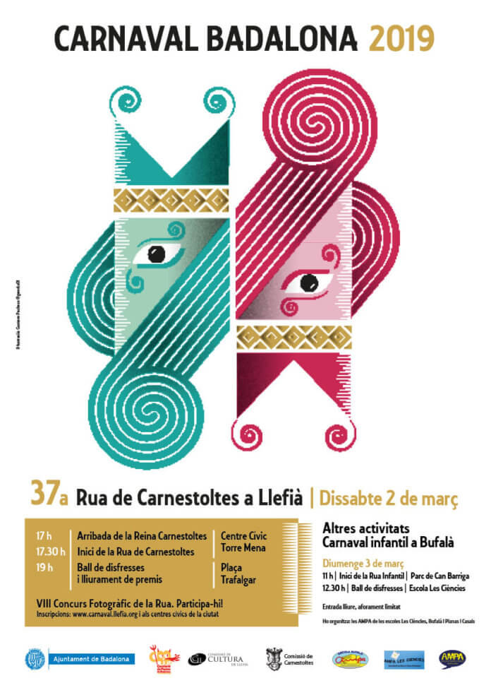 El dissabte 2 de març es celebra el Carnaval 2019 de Badalona – 37a Rua de Carnestoltes a Llefià, una activitat organitzada per l’Ajuntament de Badalona, la Comissió de Cultura de Llefià, la Comissió de Carnestoltes i la Comissió de Festes de Badalona. Des del balcó del Centre Cívic Torre Mena, la Reina Carnestoltes donarà el tret de sortida del Carnaval amb la lectura de les lleis que governaran durant aquests dies de festa. La Reina Carnestoltes proclamarà el seu regnat i convidarà la ciutadania a la disbauxa i a la festa acompanyada de la seva Cort que estarà formada per quatre súbdits i dues nimfes esbojarrades que s’associen als elements d’aigua, mar i vi, arrels dels orígens romans i de la identitat vinícola i marinera de Badalona