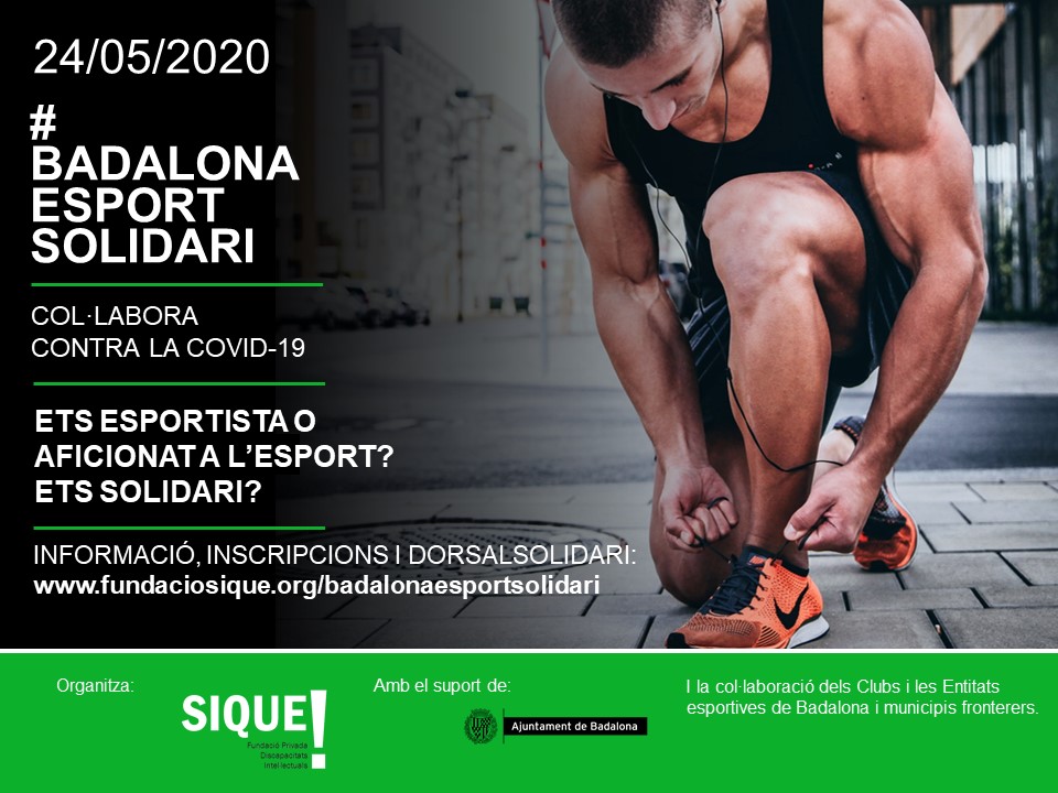 #BadalonaEsportSolidari es una iniciativa impulsada per la Fundació Sique per a persones amb discapacitat intel·lectual, i el suport de l’Ajuntament de Badalona, adreçada als esportistes i aficionats a l’esport, en col·laboració amb els clubs i les entitats esportives de la ciutat i municipis fronterers. #BadalonaEsportSolidari, que es celebrarà el diumenge 24 de Maig, uneix clubs, entitats, esportistes i aficionats a l’esport, en una acció solidària destinada a la compra de mascaretes, guants, bates i gels desinfectants per a l’autoprotecció dels usuaris i professionals de la Fundació Sique de Badalona. Així mateix, els fons recaptats ajudaran a mantenir actius els serveis 24 h / 7 dies que 25 professionals de la fundació ofereixen a les 50 persones usuàries de la Llar – Residència i el servei de suport a la llar per persones dependents.