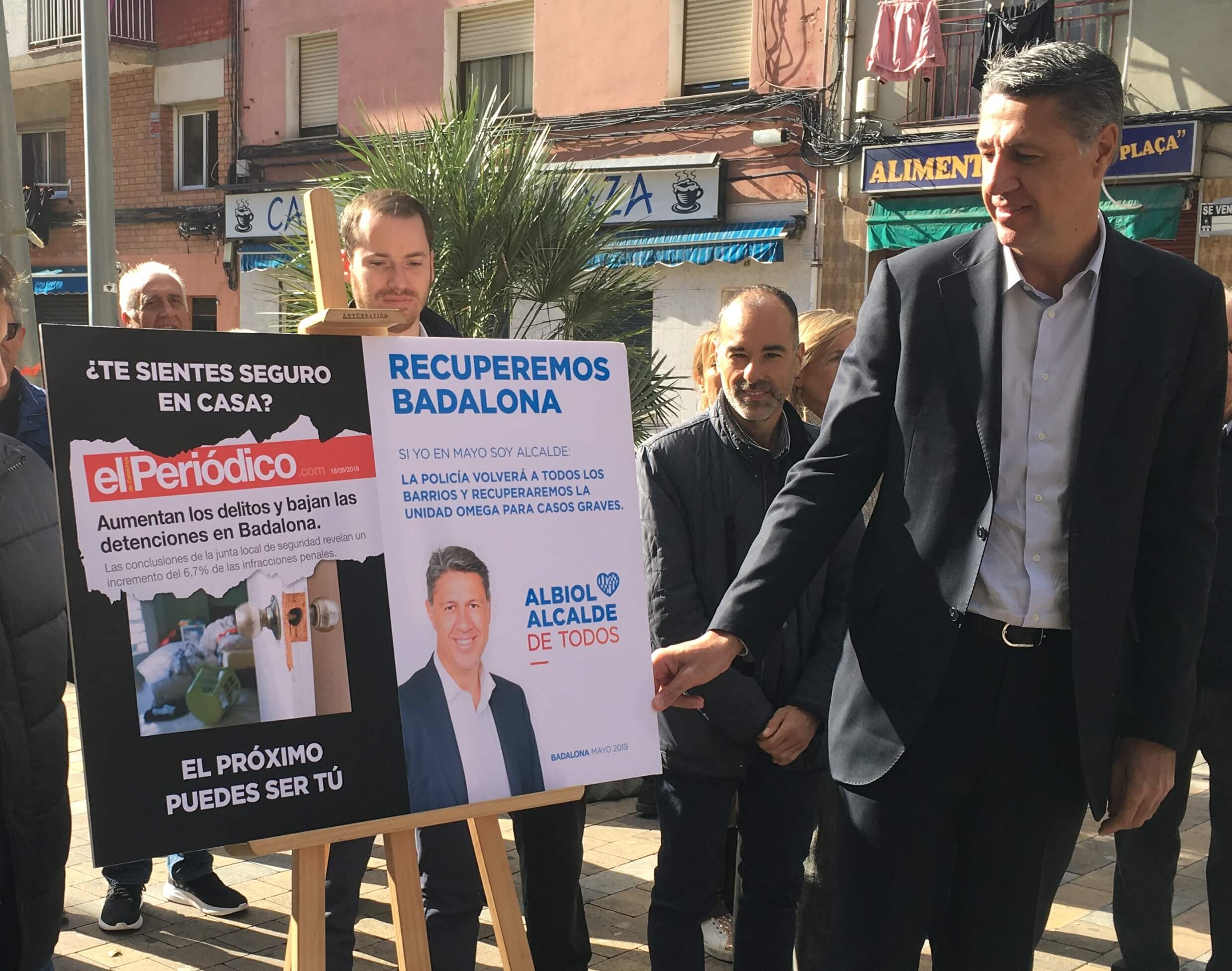 Xavier Garcia Albiol, candidat a les municipals del 2019 dels populars, vol recuperar la Unitat Omega de la Guàrdia Urbana de Badalona, si torna a l’alcaldia. En una roda de premsa, aquest dimarts a la plaça Antonio Machado de la Salut, Albiol ha presentat un seguit de propostes en matèria de seguretat. El líder popular ha estrenat una nova campanya amb un cartell que porta d’eslògan “Et sents segur a casa?“, acompanyat d’un titular del Periódico on el passat setembre asseguraven que a Badalona “han augmentat els delictes i han baixat les detencions”. Al cartell també s’afegeix la frase “El proper pots ser tu”. Albiol ha recordat que la Unitat Omega va ser retirada per l’anterior govern de Sabater i que té la intenció, si arriba a l’alcaldia, de tornar a recuperar-la. També ha presentat d’altres mesures, com incrementar la presència dels agents policials als carrers o precintar els habitatges que puguin ser ocupats. La presentació de la campanya s’ha fet al barri de la Salut Alta, on Albiol ha recordat que en la seva etapa com alcalde va precintar nombrosos pisos amb planxes d’acer.