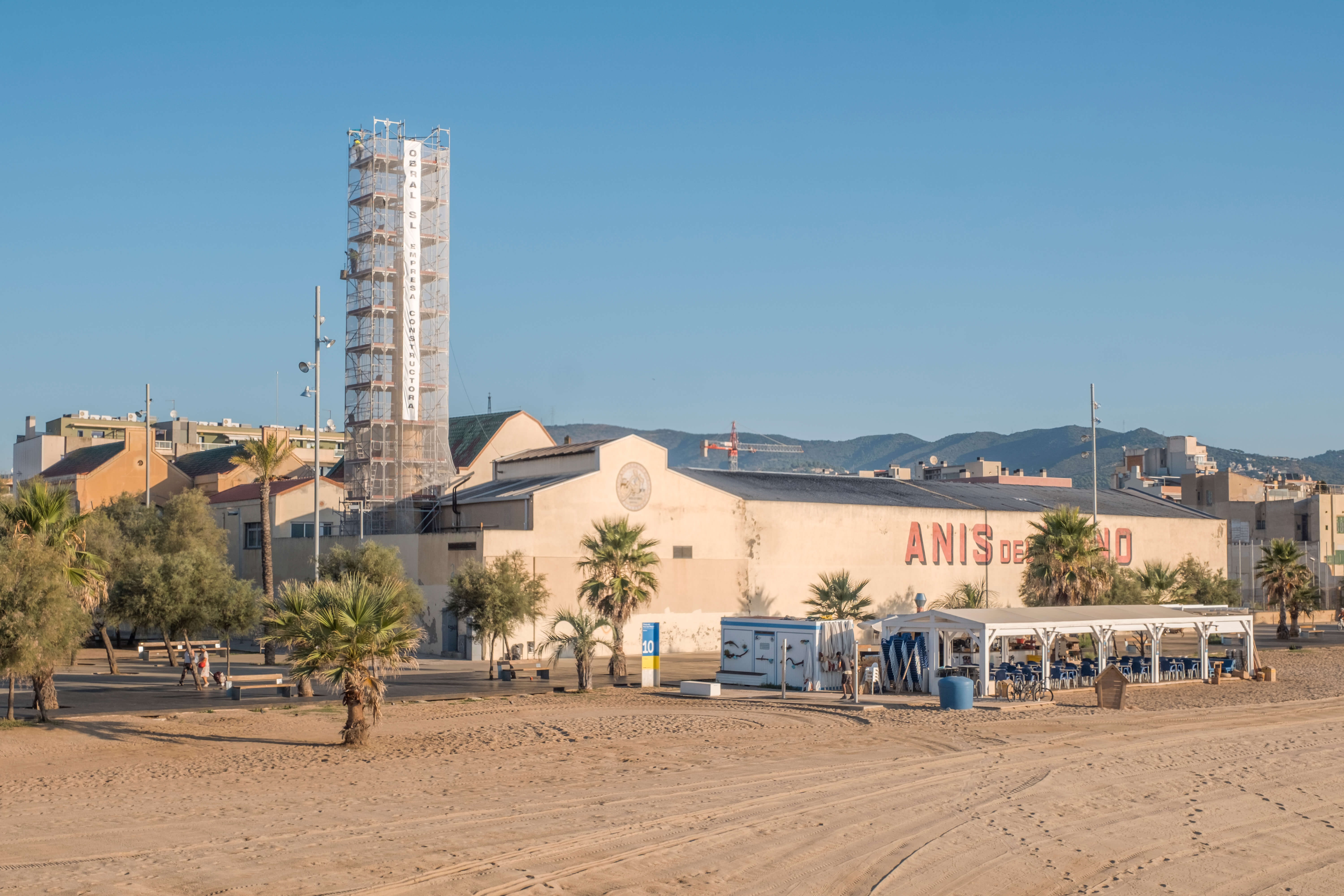 Remodelen la xemeneia de la fàbrica de l’Anís del Mono