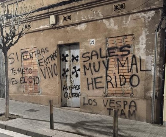 Una casa abandonada del carrer Pere Martell, al barri de Sistrells, ha aparegut amb diverses pintades amenaçadores a la façana. A les parets de l’immoble es poden llegir missatges intimidatoris com “Si entras, entras vivo, sales muy mal herido” i “Avisado queda”, signats per un grup anomenat “Los Vespa TEAM”.