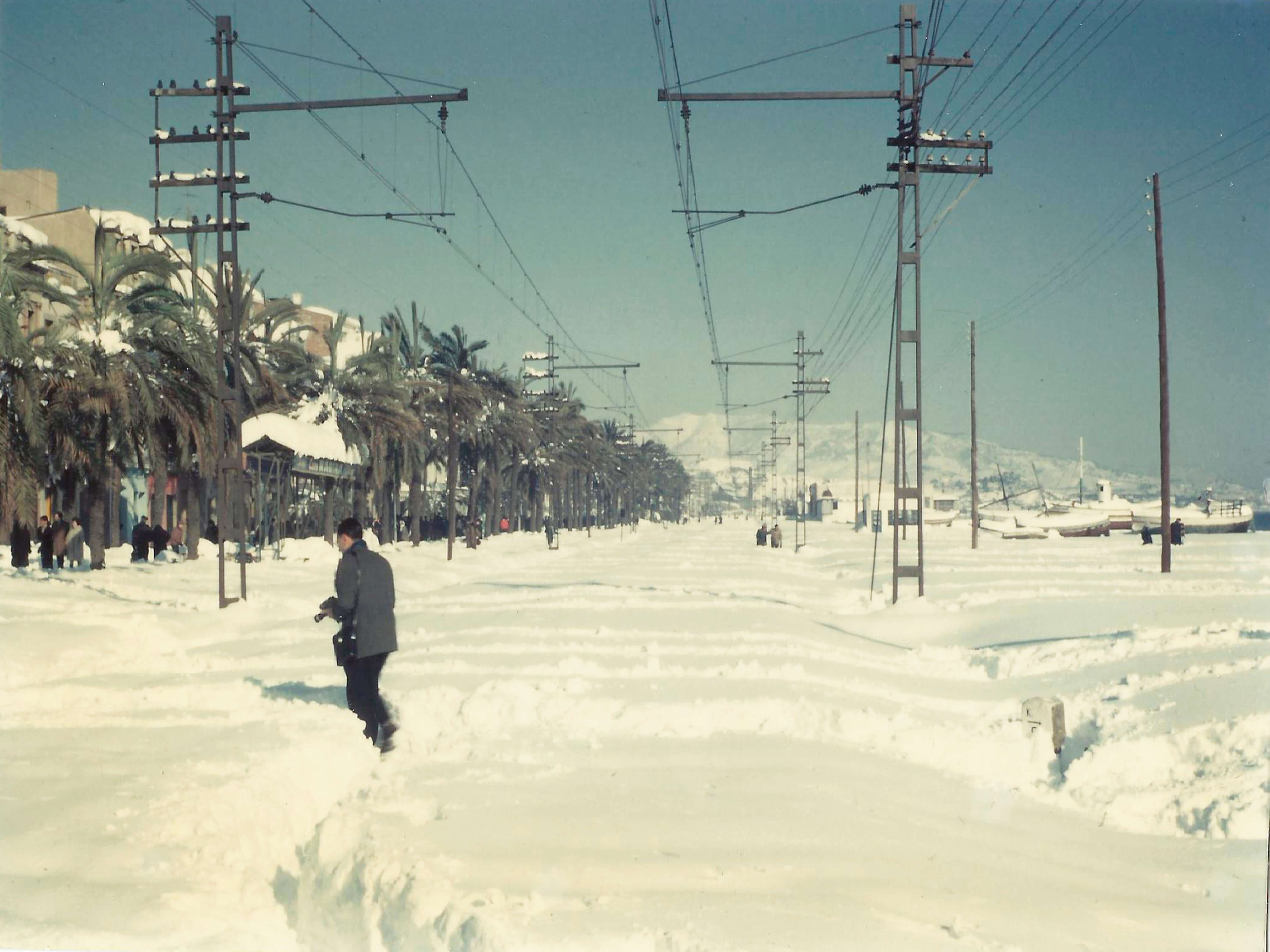 La Vanguardia del dia 27 de desembre de 1962 (per Sant Esteve no surten diaris) va dedicar 7 pàgines a la “nevada del segle”. S’hi descriu amb tot luxe de detalls com es va viure a la ciutat de Barcelona i també inclou informació, més breu, relativa a altres ciutats de la geografia catalana, com Badalona. En el cas de la ciutat, les primeres volves de neu van començar a caure la nit del dia 24. El diari explica que en aquells primers moments era una nevada feble, i que va permetre als badalonins que assistiren a la Missa del Gall tornar a casa sense cap problema. Més tard, ja durant la matinada, la nevada s’intensificà i el dia de Nadal, de bon matí, la ciutat ja estava ben coberta de neu. La precipitació va persistir durant tot el dia i, segons explica el rotatiu, va estar nevant durant més de 24 hores. Sens dubte, aquell Nadal serà recordat per a molts, com el Nadal més blanc. Foto: Badalona Recuerdos