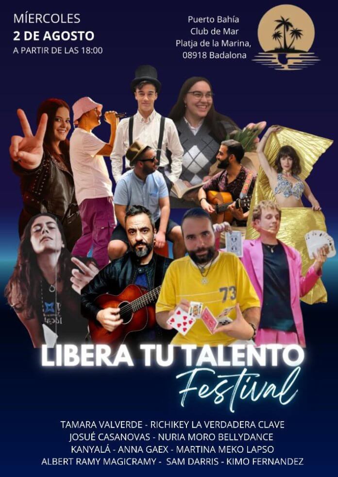 Aquest dimecres, 2 d’agost, a partir de les 18h, la platja de la Marina de Badalona, la petita cala que toca al Port, banda de Sant Adrià, serà l’escenari d’un dels actes més originals d’aquest estiu amb poca activitat cultural a la ciutat. La guingueta “Puerto Bahia-Club de Mar” acollirà el festival “LIbera tu talento“. Diversos artistes, de diferents arts, demostraran el seu talent en aquest festival que tindrà força segell badaloní. Al festival podreu trobar des de música a màgia.