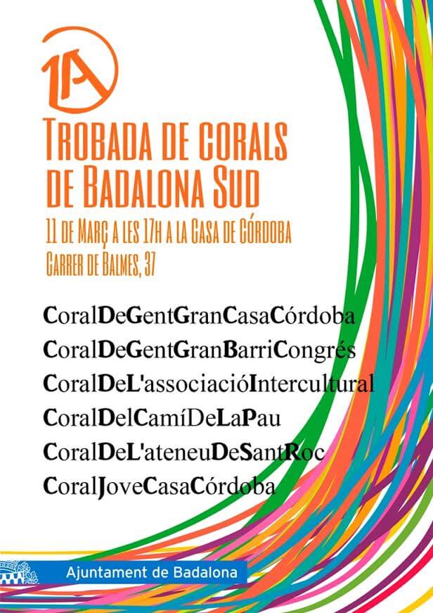 La Casa de Córdoba, situada al carrer de Balmes núm. 37, del barri d’Artigues, acollirà aquest dissabte 11 de març, a partir de les 17 hores, la 1a Trobada de Corals de Badalona Sud, organitzada per la Regidoria del Districte 6 de l’Ajuntament de Badalona i el Consorci Badalona Sud. La 1a Trobada de Corals de Badalona Sud comptarà amb la participació de la Coral de Gent Gran Casa Córdoba; la Coral de Gent Gran del barri del Congrés; la Coral del Camí de la Pau; la Coral de l’Associació Intercultural; la Coral de l’Ateneu de Sant Roc i la Coral Jove Casa Córdoba. La idea d’aquesta 1a Trobada de Corals va sorgir quan durant les dates nadalenques, i davant de l’arbre de Nadal que es va instal·lar a Sant Roc, es van organitzar diverses cantades de nadales. Aquesta 1a Trobada de Corals de Badalona Sud vol posar de manifest la riquesa cultural, expressada a través de la diversitat musical de les diferents corals dels barris de Badalona.