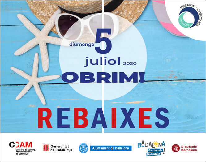 Els establiments comercials de Badalona podran tornar a obrir aquest diumenge 5 de juliol, un dels vuit dies festius que la Generalitat de Catalunya permet als comerços obrir al públic aquest any d’acord amb l’Ordre EMC/129/2019, de 28 de juny, per la qual s’estableix el calendari d’obertura a Catalunya dels establiments comercials en diumenge i dies festius per als anys 2020 i 2021.
