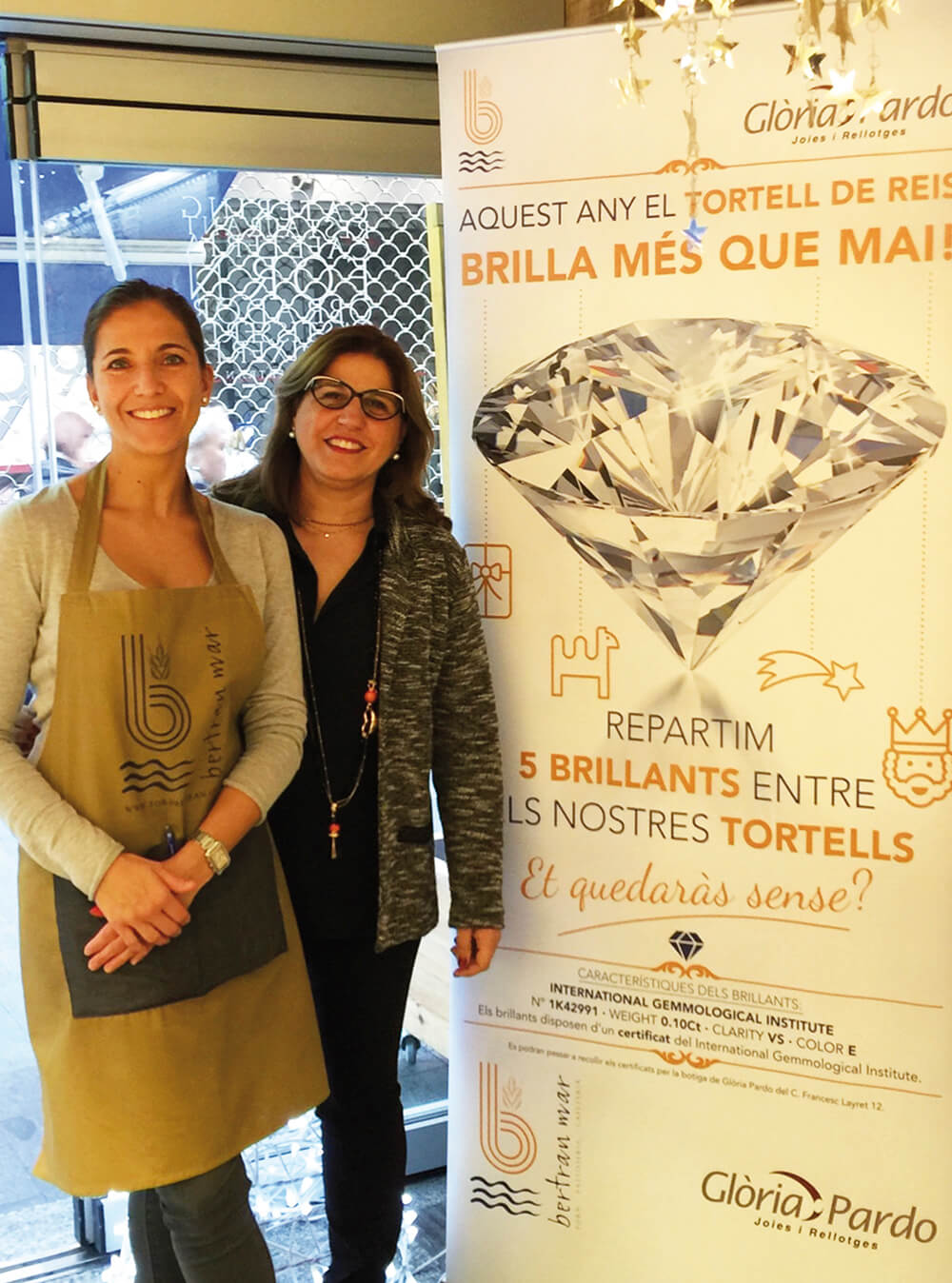 Glòria: La idea em va venir al cap i de seguida vaig pensar que podria ser una bona iniciativa. Volia fer una campanya original amb la col·laboració d’un comerç de proximitat i vaig pensar amb Bertran Mar. Fa poc que hem obert una nova botiga al carrer Francesc Layret i vaig pensar en poder organitzar una campanya singular. I si amaguéssim 5 brillants al tortell de Reis? I dit i fet, el proper dia de Reis això serà una realitat.
