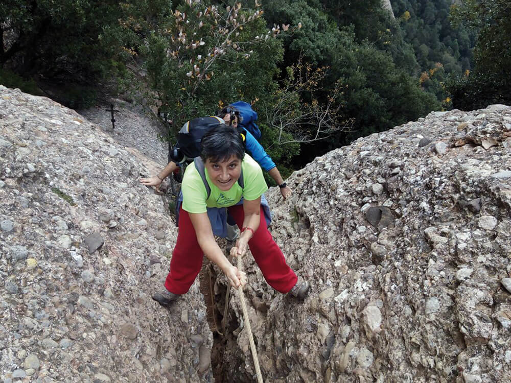 Hi ha de tot, però sobretot molta família, parelles joves amb els seus fills. Amb 7 o 8 anyets poden fer-la tranquil•lament, i si ve algun nen més petit, els pares ja el agafen en braços quan es cansen. I de cara a la gent gran, la veritat és que no t’ho sabria dir amb molta exactitud, però gent de 60 anys la fa. Sigui quina sigui l’edat dels participants, els esperem per unir-se a nosaltres. Això sí, s’ha d’estar mínimament preparat, físicament i també en la indumentària. Són 12 quilòmetres amb un desnivell d’uns 500 metres, i normalment es completa en unes tres o quatre hores, comptant amb una parada en el punt més alt per agafar aire i, qui vulgui, menjar una mica. És un recorregut circular, comencem i acabem a la seu de l’Agrupació.