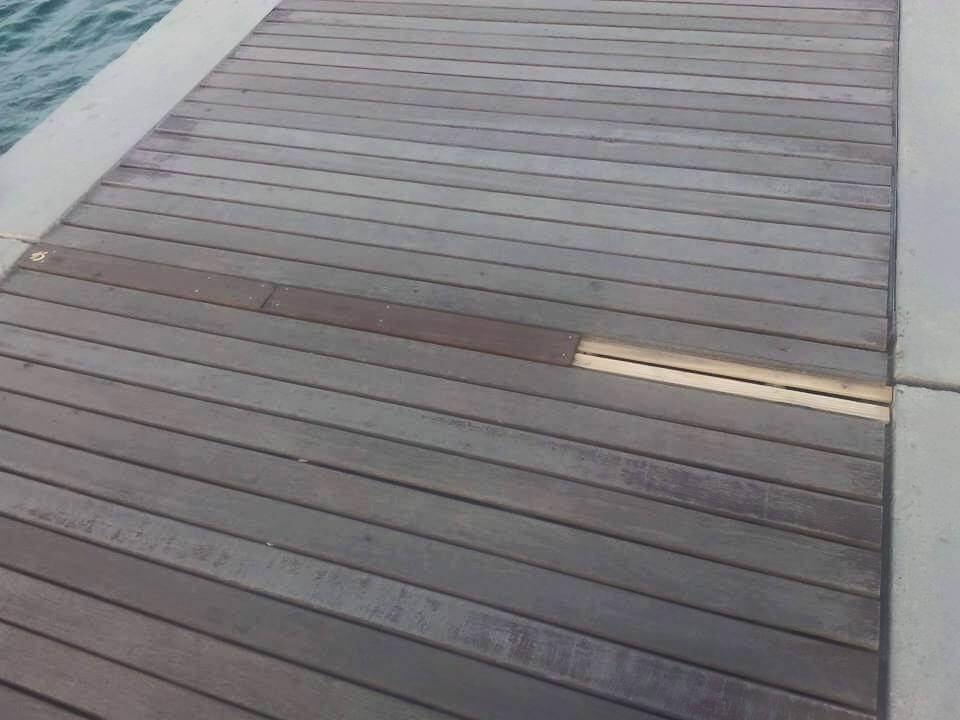 Fan malbé la fusta instal•lada al Pont del Petroli