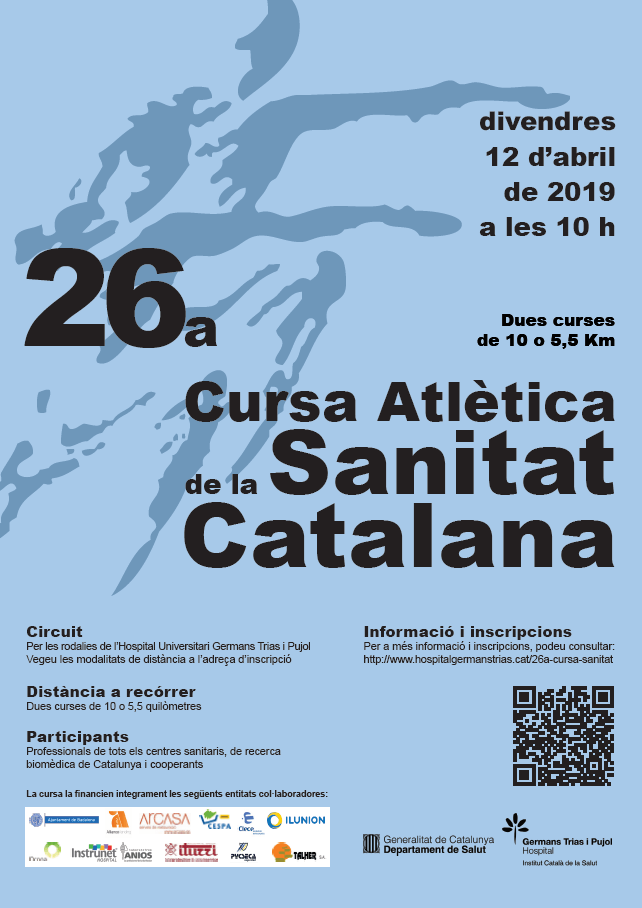 Professionals de l’àmbit sanitari i biomèdic català participaran aquest divendres 12 d’abril a la 26a edició de la Cursa atlètica de la Sanitat Catalana, que se celebra a l’entorn del Campus Can Ruti i la serralada de Marina de Badalona. Aquest any la carrera comptarà amb recorreguts entre les curses de 5,5 km i 10 km. La cursa farà alterar, en moments puntuals, algun dels accessos o carrers del barri de Canyet. Les dues curses començaran a les 10h del matí davant de Can Ruti.