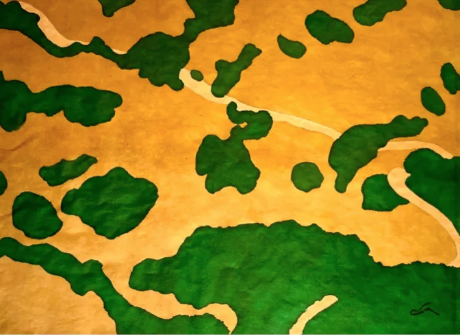 La representació d’aquests paisatges no és inventada; tenen localització geogràfica. Els esculls són de Cadaqués, Empúries, l‘Escala i Calella de Palafrugell, i la màquia és tota dels vessants de la serralada litoral que envolten Tiana. Aquests vessants, fins a l’incendi del 1995, eren bastant densos. Tenien boscos fins a dalt de la cadena on hi havia el mirador dels 9 pins, que els mariners feien servir per identificar que estaven a l’altura de Tiana, ja que Alella en tenia un altre de 7 pins. Aquest any, per les darreres pluges concentrades de finals d’hivern, principis de primavera, no són tan evidents, però de l’any 1995 fins al 2022, no s’han acabat de regenerar els boscos ni tots els pins que donaven nom al mirador. Finalment, Erm serà el paisatge que en poc temps dominarà sobre tots els altres.