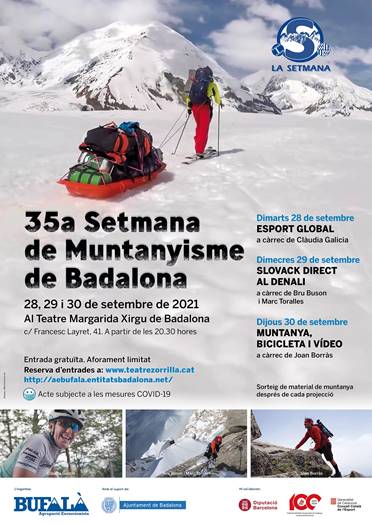 Els propers dies 28, 29 i 30 d’aquest setembre torna la Setmana de Muntanyisme de Badalona després d’un any sense haver-la pogut realitzar degut a la pandèmia provocada per la Covid-19 , i és per aquest motiu que tornem amb més força, il·lusió i optimisme que mai. L’esdeveniment tindrà lloc al Teatre Margarida Xirgu a les 20:30h, l’entrada és gratuïta i com sempre desprès de cada projecció i col·loqui hi haurà un sorteig de llibres i material de muntanya. Les persones interessades en assistir-hi han de reservar les entrades al web del teatre Zorrilla, http://www.teatrezorrilla.cat