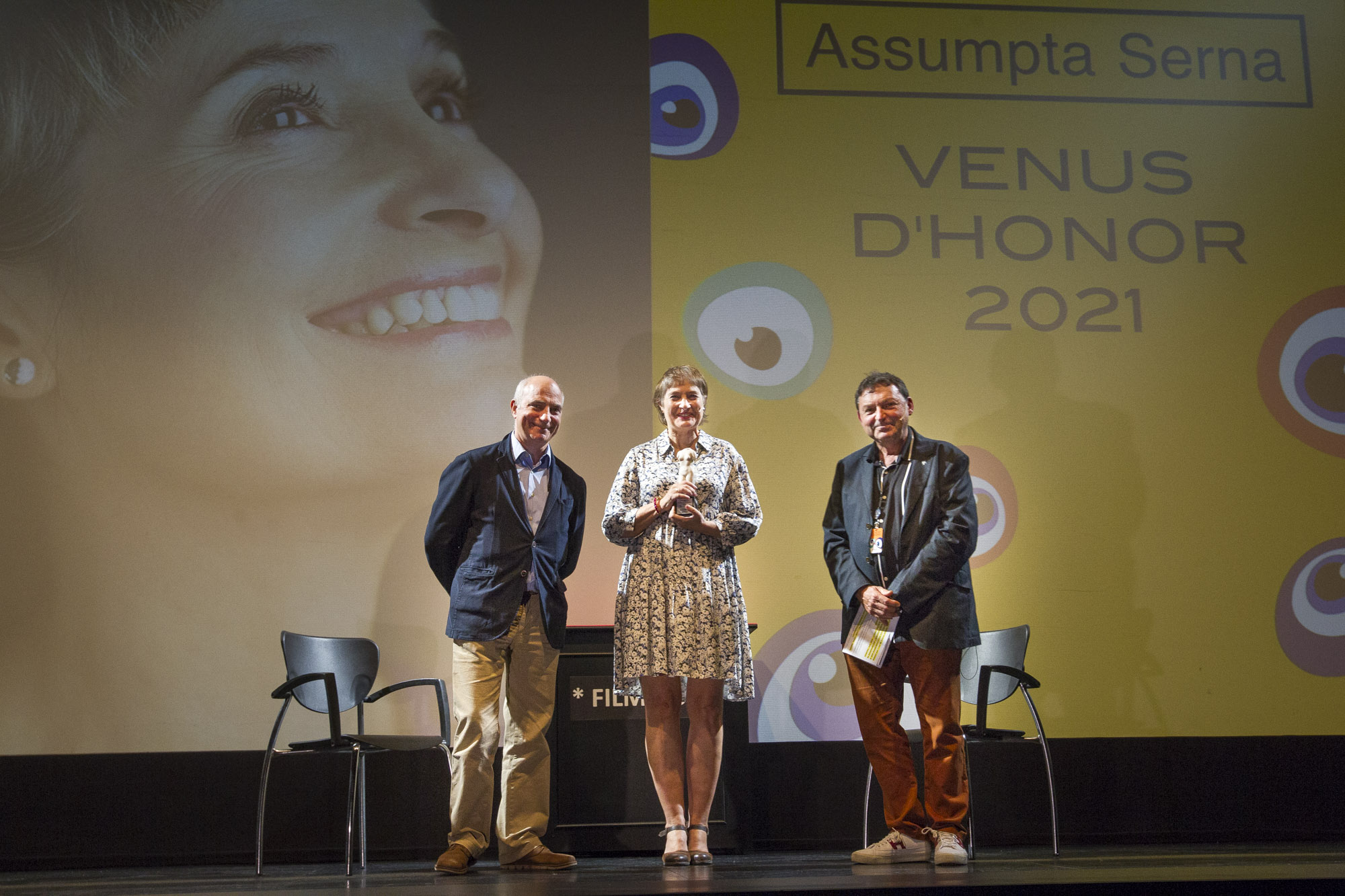L’actriu Assumpta Serna ha rebut aquesta dilluns la Venus d’Honor de la 47a edició de FILMETS Badalona Film Festival. El lliurament del guardó més preuat del festival de curtmetratges ha tingut lloc al Teatre Zorrilla de Badalona davant d’un teatre ple d’estudiants d’escoles de cinema i del món audiovisual de Catalunya. El conseller delegat de Badalona Comunicació, Josep Viñeta Balsells, li ha donat la Venus d’Honor, acompanyat del director artístic del festival, Agustí Argelich.