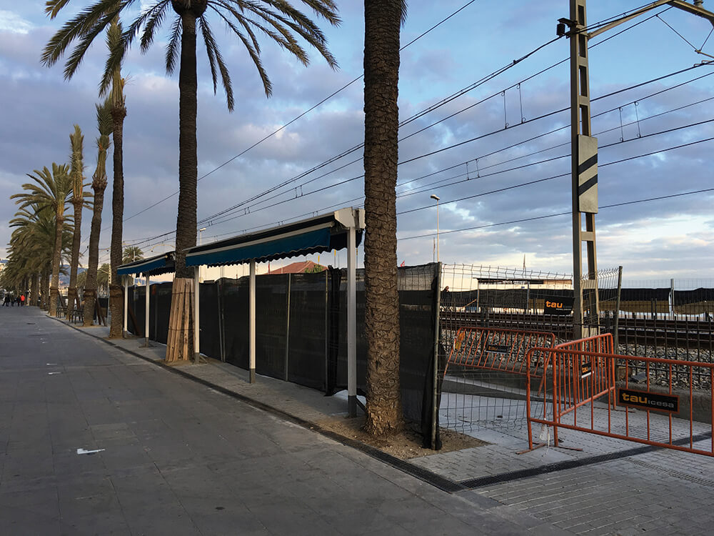Les obres de remodelació del pas inferior a la via del tren entre el carrer Santa Madrona i el passeig Marítim han quedat aturades perquè l’empresa adjudicatària d’aquests treballs ha entrat en fase de liquidació. La seva execució queda ara pendent de què l’Àrea Metropolitana Barcelona (AMB), que finança i supervisa aquest projecte, encarregui els treballs pendents de realitzar. Del conjunt de l’obra s’han posat en servei els espais urbanitzats del carrer Santa Madrona i del passeig Marítim. Pel que fa a les escales, rampes i pas, aquests no han entrat en servei per la manca de baranes, passamans i enllumenat. S’ha signat l’acta de desestiment per tal de vetllar per la seguretat de la infraestructura i s’ha acordat que l’empresa constructora faci el manteniment fins al dia 16 de gener. A partir d’aquesta data l’Ajuntament de Badalona s’encarregarà del manteniment fins que s’adjudiqui a una nova empresa. Aquestes obres ja van ser motiu de polèmica perquè es van començar just quan va començar la temporada de bany, el passat mes de juliol.