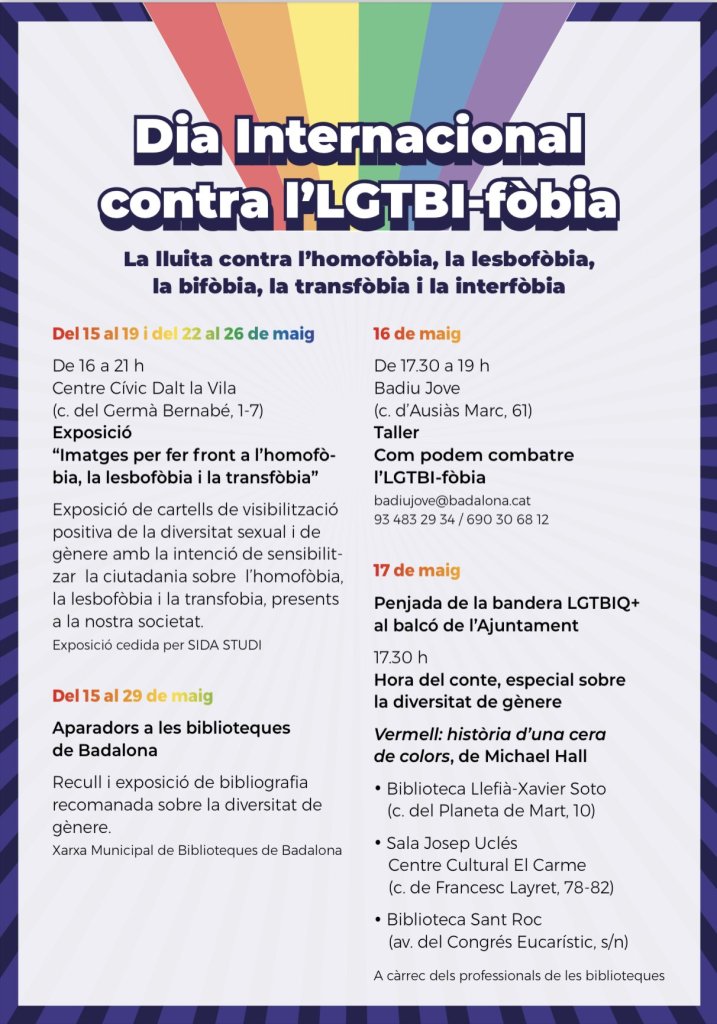Badalona commemora, avui 17 de maig, el Dia internacional contra l’LGTBIQ-fòbia amb diverses activitats i tallers: