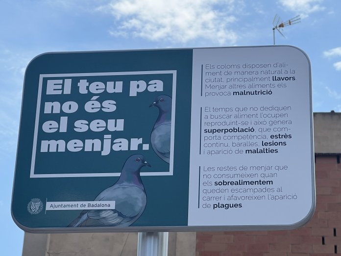 L’Ajuntament de Badalona ha posat en marxa una campanya de sensibilització contra la pràctica de donar aliment, sobretot pa, als coloms i altres aus urbanes. L’objectiu és afavorir el benestar animal i evitar que aquests animals es converteixin en una plaga, amb efectes negatius per a la sanitat pública i la conservació dels espais urbans.