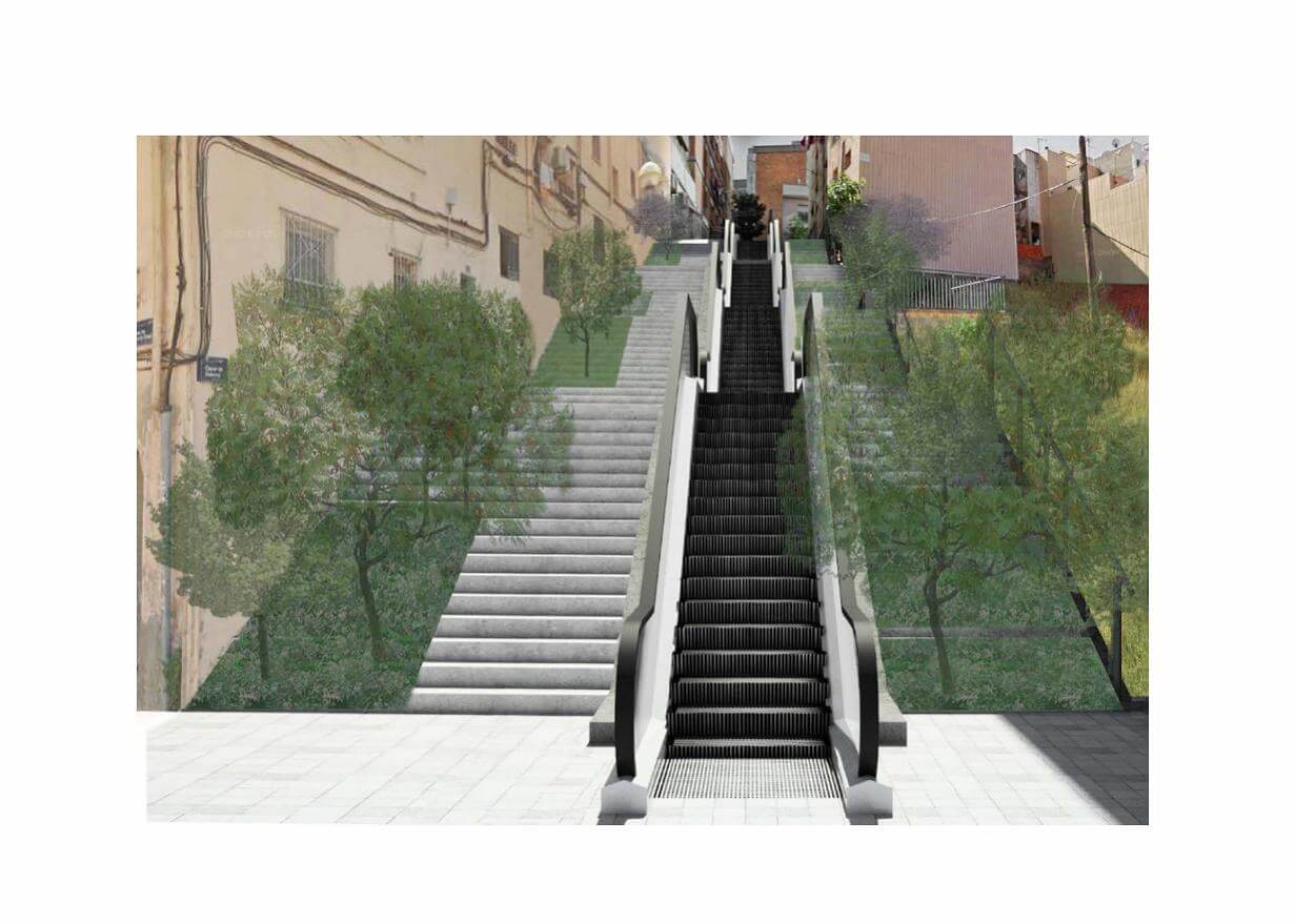 Escales mecàniques al carrer de Fortuny, al barri de Sant Crist de can Cabanyes.