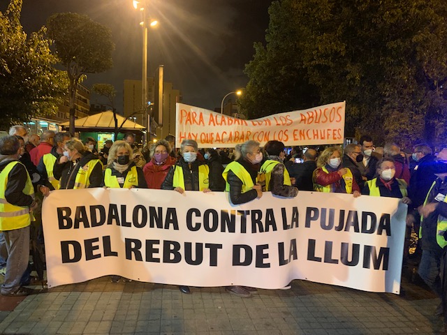 Més de 400 persones van sortir al carrer, tot i les amenaces de pluja, aquest dimecres pels carrers del Centre de Badalona per protestar contra el constant augment del preu de la llum. Convocades per la Federació Veïnal de Badalona (FAVB), amb el suport d’unes 40 entitats de la ciutat, la manifestació va començar a la plaça Pep Ventura i va acabar a la plaça de la Vila. Tots els partits polítics de la ciutat van donar també suport a la convocatòria amb l’assistència de representants d’aquestes formacions. La FAVB va explicar, abans de començar l’acte, que aviat hi haurà d’altres actes de protestes per reclamar la baixada urgent dels preus de l’electricitat.