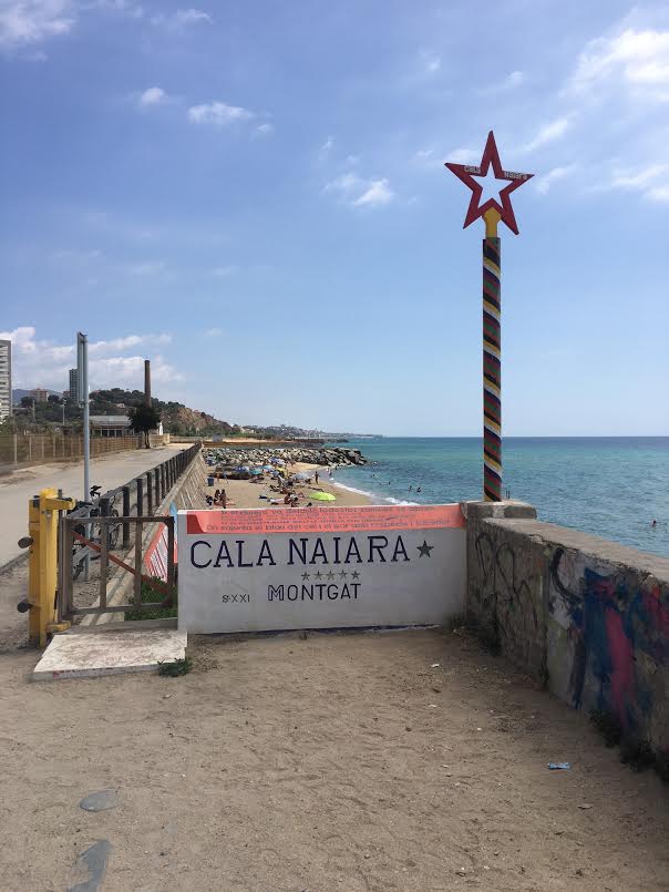 La Cala Naiara, o abans Cala Taps pels taps de suro que s’hi trobaven de l’empresa de lleixius situada davant, és una petita cala entre Montgat i Badalona, just davant del Malamar, ara tancat. Segons s’explica el nom prové d’una montgatina, anomenada Naiara, que practicava el nudisme i va començar a netejar i cuidar l’entorn. Amb els anys, un altre veí del poble, en Miquel, va decidir gravar el seu nom en una de les pedres de la cala per agrair-li a la Naiara tota aquesta tasca. Aquest trosset de platja s’ha convertit en una de les millors platges per practicar el nudisme de tota l’Àrea Metropolitana de Barcelona. L’ambient familiar, la conservació de l’espai i la seva tranquil·litat han convertit la cala en un oasi enmig de les grans aglomeracions de les platges de l’entorn. En Dani Garcia és un dels habituals de la platja i ens explica que fins i tot disposen d’una pàgina a Facebook on penjar imatges i comentaris sobre la cala. “Hi ha hores on l’ambient es tant familiar que gairebé tothom ens saludem al arribar o bé al marxar i també comentem com està l’aigua”. De fet, són els propis usuaris de la platja els que mantenen net l’espai. Al voltant de la cala podem trobar-hi indicacions, cartells, plantes, escales o rampes fetes pels propis banyistes. Sota el nom de Cala Naiara, “el manantial de Montgat” podem trobar cartells al seu voltant. En Dani ens explica que els practicants de nudisme conviuen perfectament, i amb total complicitat amb els no practicants.Segons comenten alguns dels seus usuaris la implicació de l’Ajuntament de Montgat o l’Àrea Metropolitana de Barcelona, responsable de les platges, en aquest espai es mínima i gairebé no hi destina cap efectiu pel seu manteniment o neteja. Només aquest estiu s’ha establert un punt de vigilància. La cala també depèn dels efectes de la natura. Hi ha estius, com per exemple, l’any 2009, que gairebé va desaparèixer pels efectes dels temporals. L’anada i tornada de sorra fa modificar les dimensions d’aquesta platja. A la cala no hi ha tampoc cap tipus de serveis, ni dutxes ni guinguetes, però els seus usuaris expliquen que això converteix l’espai en un lloc tranquil i sense masses aglomeracions. Tant si sou amans del nudisme, o no, en aquest indret trobareu un espai de pau i tranquil·litat on passar una estona agradable durant aquest estiu.