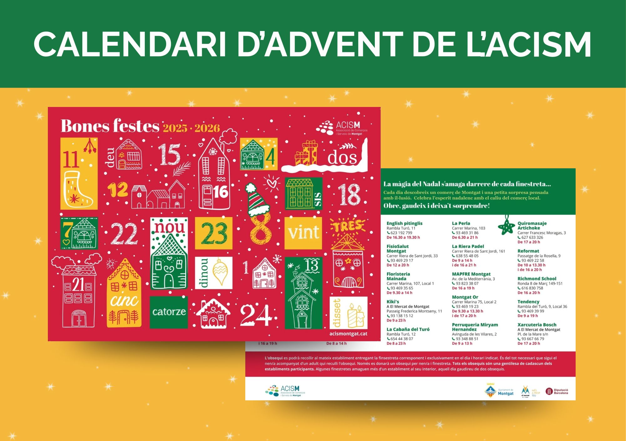 Nadal arriba a Montgat amb una de les activitats més esperades pels més petits: el Calendari d’Advent de l’ACISM. Com cada any, l’associació de comerços de Montgat convida tots els nens i nenes del poble a descobrir, fins el 24 de desembre, un comerç diferent que els espera amb un petit obsequi.