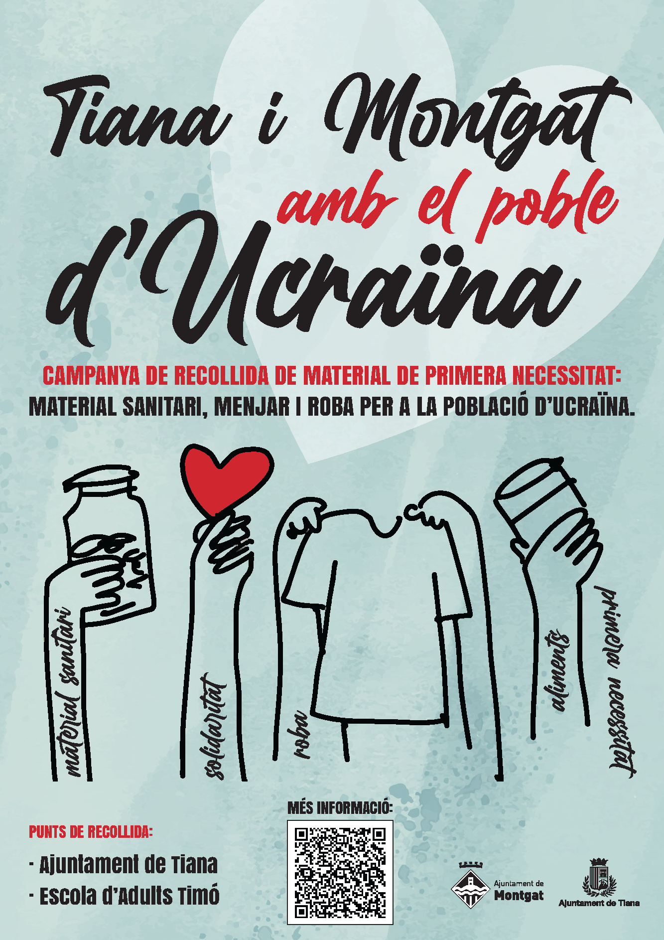 Les dependències municipals de l’ajuntament de Tiana i l’Escola d’Adults Timó es converteixen en un dels punts de recollida de material perquè veïns i veïnes de les dues viles puguin mostrar la seva solidaritat respecte el poble d’Ucraïna portant material i aliments de primera necessitat que en els propers dies es portaran al territori en conflicte.