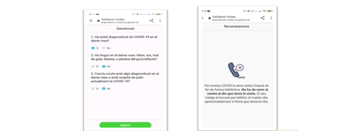 Des d’aquesta setmana, l’Hospital Germans Trias ha posat en marxa un nou projecte de checklist de consultes externes amb l’objectiu d’extremar les precaucions davant l’alta prevalença a la població de pacients COVID i poder continuar donant una bona assistència. El projecte consisteix en l’enviament de sms als pacients que han de ser visitats de forma presencial 72 hores abans de la visita amb unes preguntes sobre si han tingut contacte o tenen COVID. Els missatges també recorden si la visita serà presencial o telemàtica.
