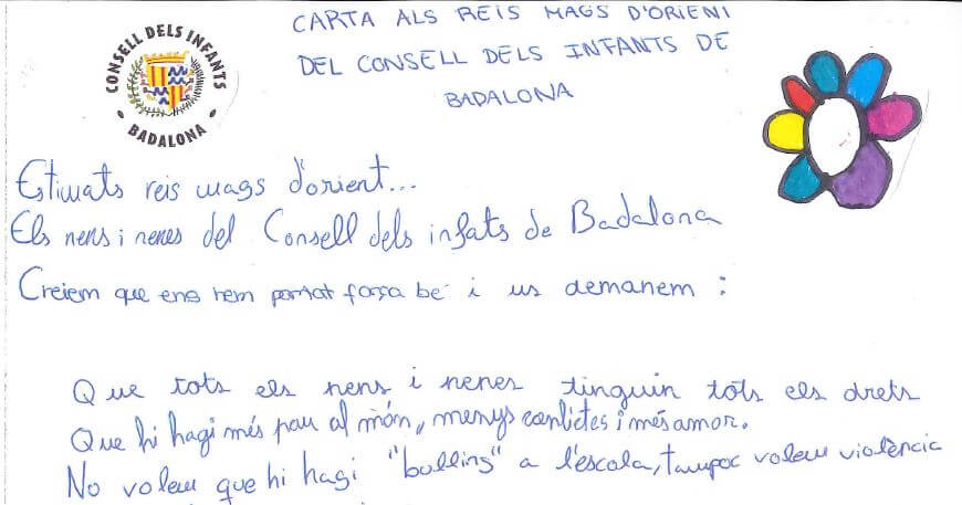 Els nens i nenes del Consell dels Infants de Badalona creiem que ens hem portat força bé i us demanem: