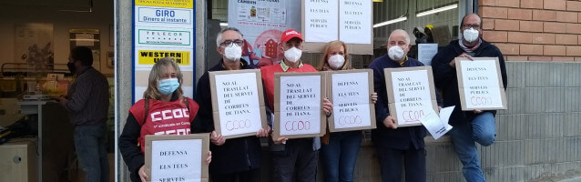 CCOO i UGT han denunciat públicament que Correos ha unificat els carters de Tiana als equips de Montgat. Els sindicats consideren que aquestes integracions al Maresme són un “perjudici greu” en la prestació del servei de les dues primeres poblacions i acusen la companyia de contribuir al fenomen de l”Espanya buidada’. Per la seva part, fonts de Correos han assegurat que tots els carters mantenen la seva àrea de repartiment habitual, amb el mateix horari i clients. Segons la companyia, l’oficina de Tiana continuarà oberta i l’únic canvi és que els carters surten a fer la ruta des de Montgat.