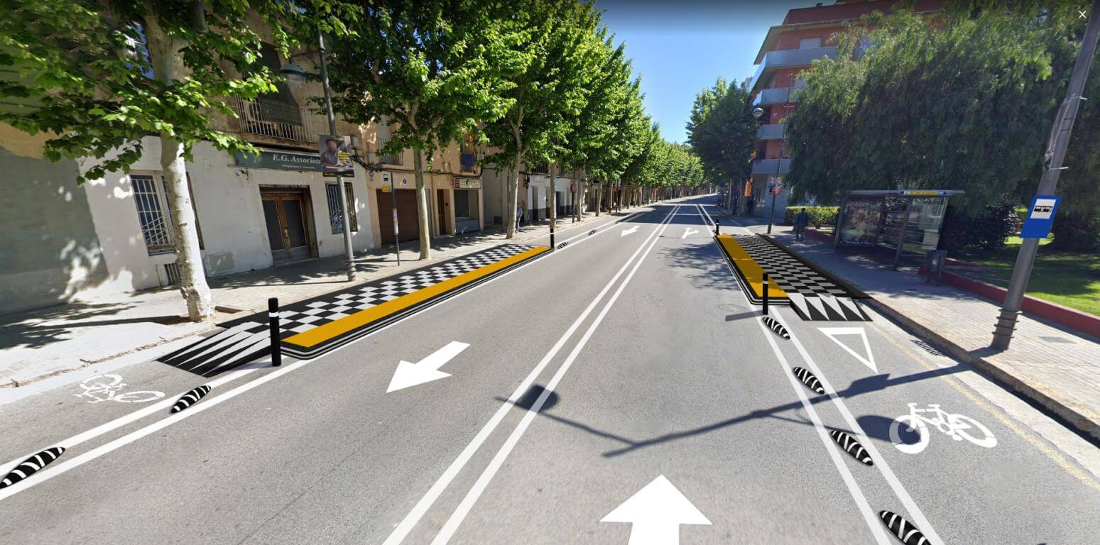 En el tram d’un quilòmetre entre que va des del carrer d’en Prim fins al carrer del Torrent de Vallmajor, es farà un carril bici bidireccional segregat i separat segons el sentit amb peces separadores. La disposició final de la calçada en aquest tram serà: carril bici, carril de circulació, carril de circulació i carril bici.