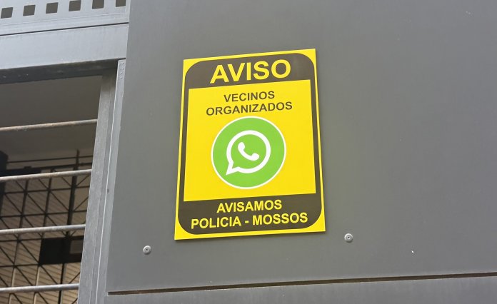Cada vegada més comunitats de veïns de Badalona opten per organitzar-se a través de grups de WhatsApp per prevenir robatoris o possibles incidents a les seves finques. La iniciativa, que ja és visible a diversos edificis del barri de Montigalà, consisteix a col·locar cartells a la façana exterior avisant que els veïns estan connectats i en alerta davant qualsevol situació sospitosa.