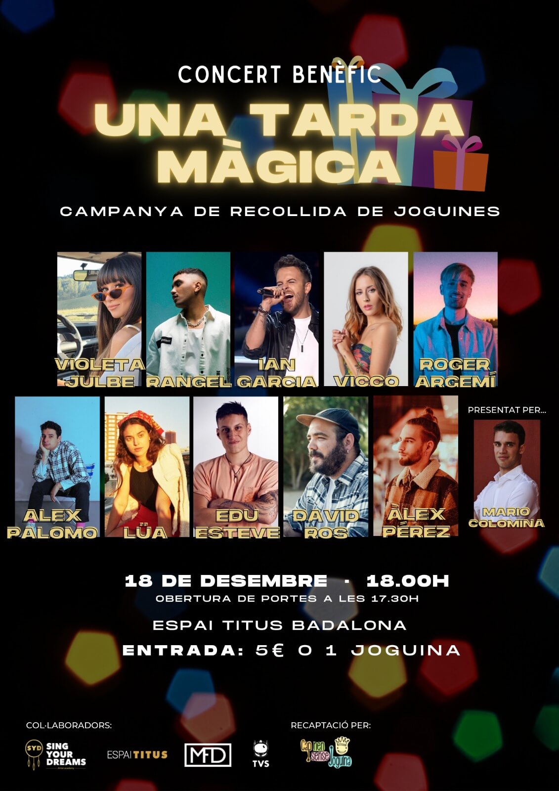 El proper dissabte, 18 de desembre, l’Espai Titus acollirà diversos artistes en un concert solidari, amb l’objectiu de recaptar joguines i fons per als més petits. De la mà de l’associació “Cap nen sense joguina” en la recaptació, s’ajudarà als Reis d’Orient i al Pare Noel per arribar a més llars aquest Nadal. El requisit per accedir-hi serà únicament una joguina en bon estat per persona, o bé una contribució de 5€, els quals aniran destinats íntegrament a la causa esmentada.