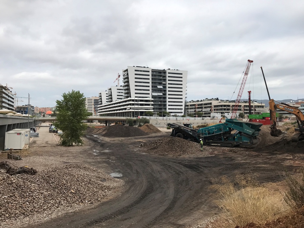 Concretament, en aquesta àrea s’estan retirant les terres actuals (que són reblerts d’antics abocaments no aptes per a l’ús urbà al qual està destinat aquest espai) i s’estan garbellant i separant abans de transportar-les a un abocador. Aquest procés inclou diferents mesures correctores per evitar la dispersió de la pols, com freqüència de rec amb aigua i un sistema per rentar les rodes dels vehicles pesants que participen en les obres, entre d’altres. Un cop retirades les terres impactades d’aquest punt, es recuperarà la cota del terreny actual per on ha de transitar el desviament del ferrocarril i preparar l’espai en els termes ambientals i geotècnics adequats. Aquesta reposició de terres es realitza amb les sorres del canal, que majoritàriament estan en bones condicions.