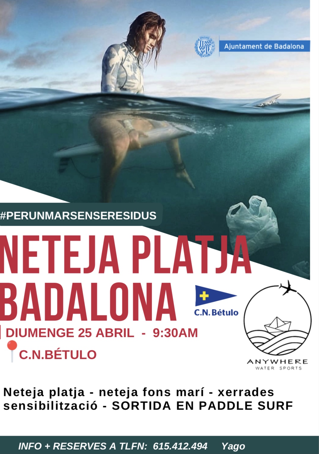 El diumenge, 25 d’abril, tindrà lloc el “Clean Up Day”, amb el lema d’un mar sense plàstics. A Badalona, el Club Nàutic Bètulo ha organitzat un matinal per netejar les platges de la ciutat, tant la sorra com l’aigua. A la sorra serà amb grups reduïts recollint residus i a l’aigua amb grups de busseig+snorkel i recollida de microplàstics amb paddle surf i xarxes de recollida de microplàstics. La convocatòria serà a les 9:30h del matí, amb una explicació de la jornada i entrega del material i a les 10h començarà la neteja. Les persones interessades per fer de voluntaris o voluntàries poden adreçar-se al telèfon 615.412.494 (Yago) i reservar una plaça per tirar endavant aquesta neteja.