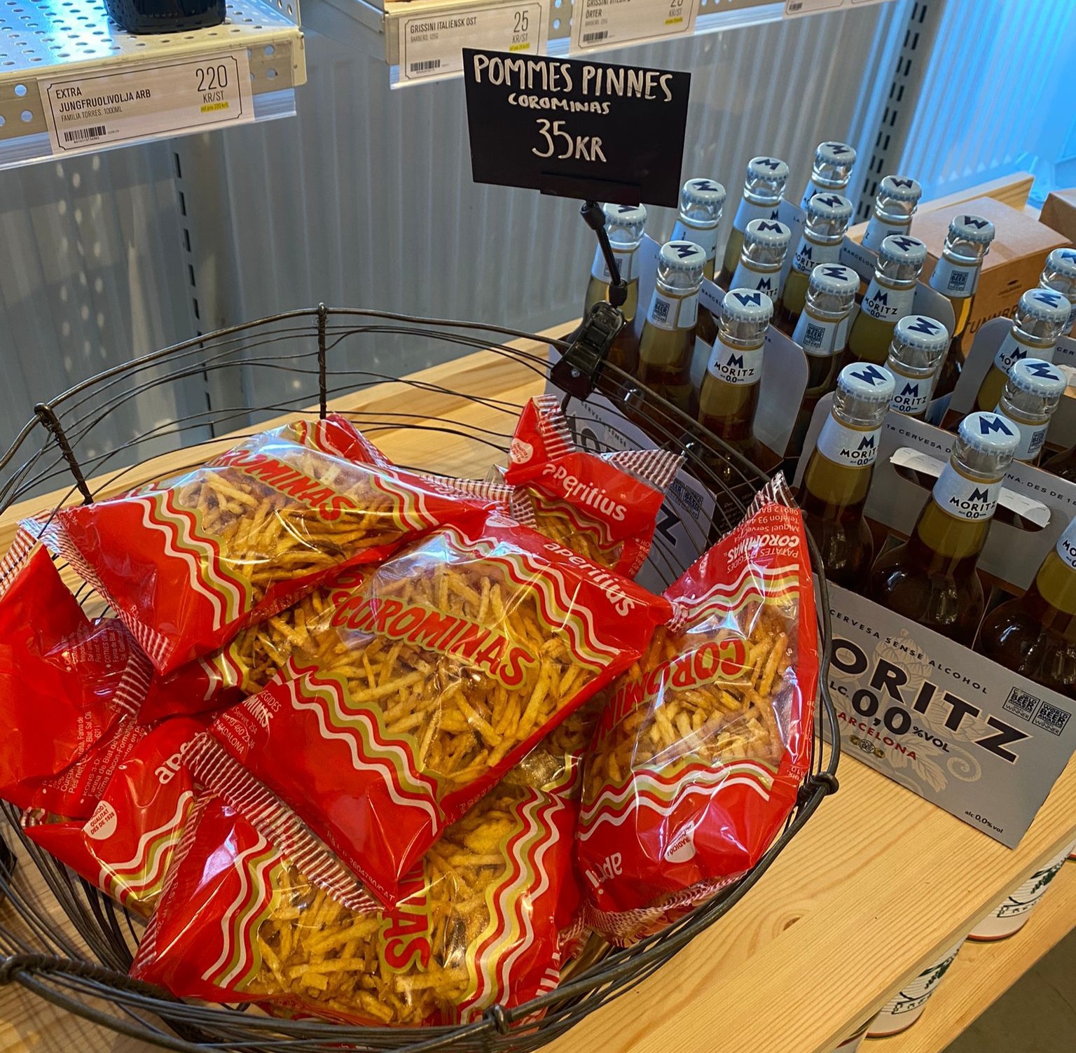 Les Patates Corominas són un dels símbols gastronòmics més destacats de Badalona. La seva venda, sobretot limitada a la ciutat i poblacions properes, fa que el producte s’identifiqui molt amb Badalona. Un lector del TOT ens ha fet arribar aquesta foto de la cadena sueca de supermercats “Urban Deli” on venen Patates Corominas.