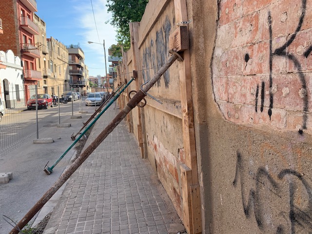 Un grup de veïns del carrer Vila Vall-Llebrera han demanat a l’Ajuntament que faci arreglar part del mur de l’antiga fàbrica Can Llamas, des de fa anys convertit en un solar d’herbes. Fa mesos, part del mur va cedir i encara resta apuntalat.