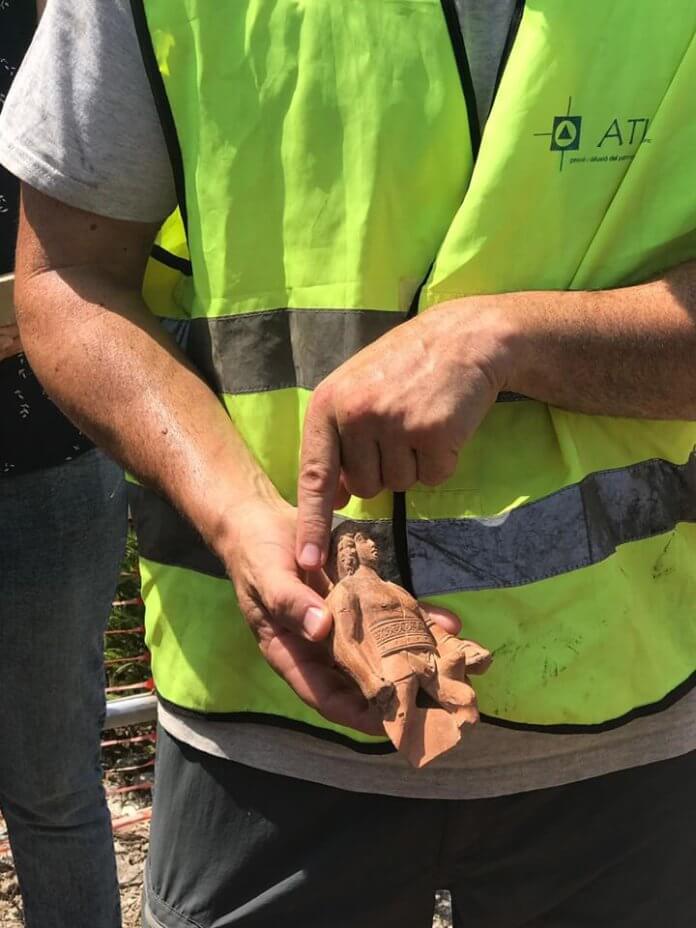 L’excavació, realitzada en extensió en un solar de 4.395 m2, també ha posat al descobert elements constructius romans que, a falta de l’estudi posterior, semblen tenir connotacions funeràries. D’altra banda, s’ha recuperat material ceràmic del segle V (vaixella fina de taula de procedència gal·la) que permetrà elaborar un discurs sobre una època de la qual no teníem informació fins ara, i una espectacular llàntia de terracota en forma de gladiador, de factura molt detallista, veritablement excepcional.