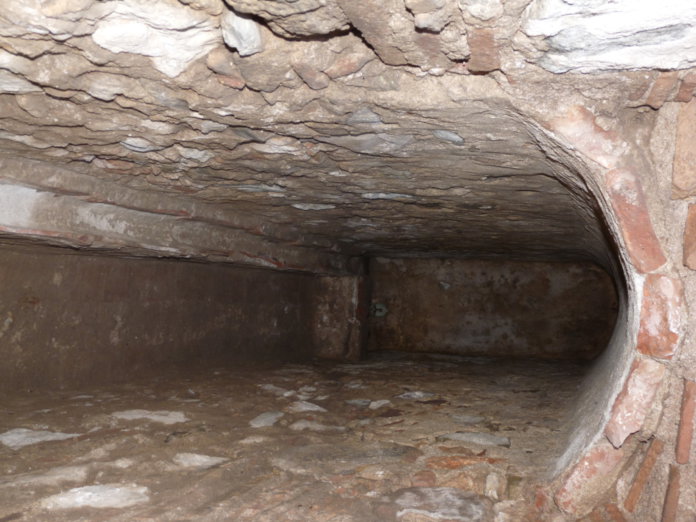Foto: Interior de la mina d’aigua trobada durant els treballs d’excavació. Foto: J. Ardiaca