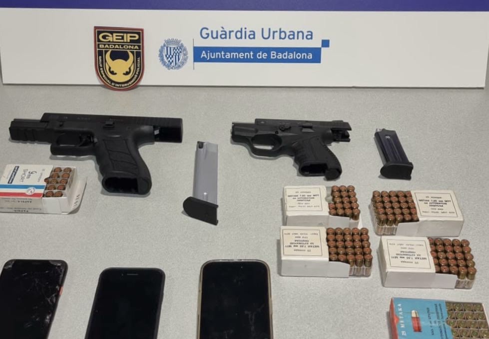 La Guàrdia Urbana de Badalona ha detingut aquesta passada nit, de divendres a dissabte, un home que portava dues pistoles, més de 120 cartutxos, diners en efectiu i diversos telèfons mòbils. La detenció ha estat al barri de la Mora, durant un control de la Guàrdia Urbana. Segons fonts policials, la detenció ha anat a càrrec del grup GEIP. Les mateixes fonts han confirmat al TOT Badalona que el detingut seria de l’Europa de l’Est.
