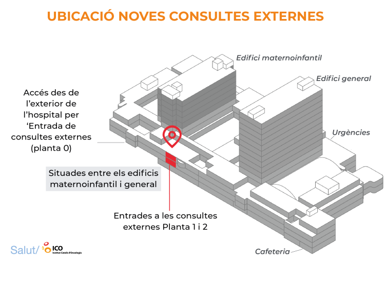 La superfície total de les noves consultes externes és de 1.355 m2 dividides en dues plantes que donen cabuda a 26 despatxos per atendre pacients. Cada planta té una superfície de  635,95 m2 i acolliran els serveis d’oncologia mèdica, hematologia, cures pal·liatives, nutrició, psicooncologia, treball social i consell genètic.