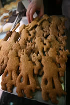 El dimoni, un dels elements més representatius de les festes de maig de Badalona, va ser, fa uns anys, la font d’inspiració per a la pastisseria Ventura per a crear un carquinyoli amb forma demoníaca que només es venia aquests dies. Inspirant-se en la figura del dimoni, als anys 1940, Jacinto Ventura, propietari de la coneguda pastisseria del Centre, va decidir participar de la celebració creant una peça de pastisseria pròpia que fes referència a la festa. Així és com va néixer el carquinyoli-dimoni de Badalona. Seguint aquesta tradició la desapareguda pastisseria Ventura elaborava, cada any coincidint amb les Festes de Maig, amb els mateixos motllos que va fer l’avi Jacinto i de forma totalment artesanal, el carquinyoli dimoni. Era la seva particular, i dolça aportació a les celebracions festives que aquests dies es viuen a la ciutat.