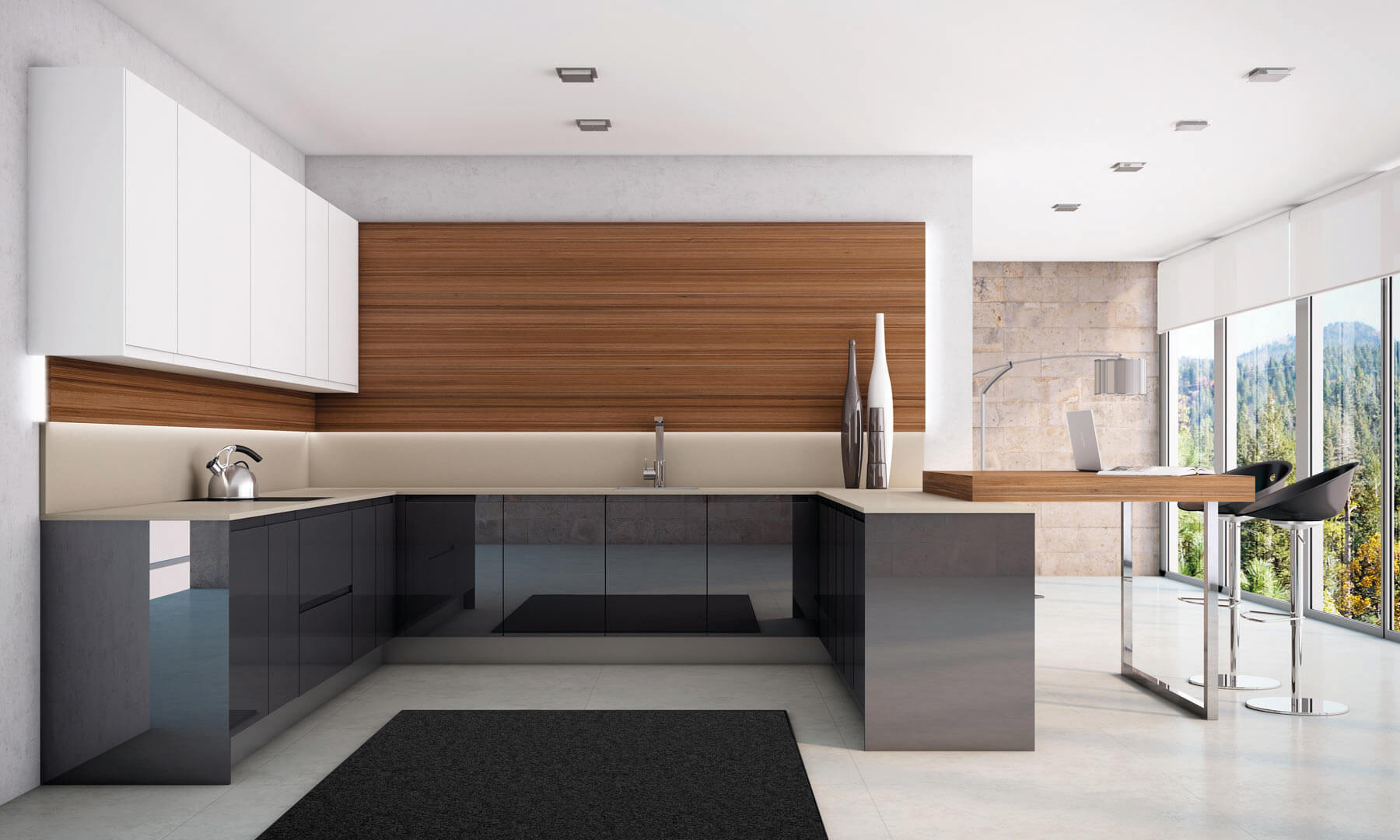 Es recomanen els materials “atemporals”, que no passin de moda en dos dies. Hi ha una infinitat de materials contraxapats de totes les fustes possibles i fòrmiques de tots els colors. Opteu per les d’alta brillantor, les mat donen un aspecte molt pobre i són més difícils de netejar. Si combineu dos colors mai alterneu les portes. Deixeu la part de dalt d’un color i la de baix en un altre, en tot cas.
