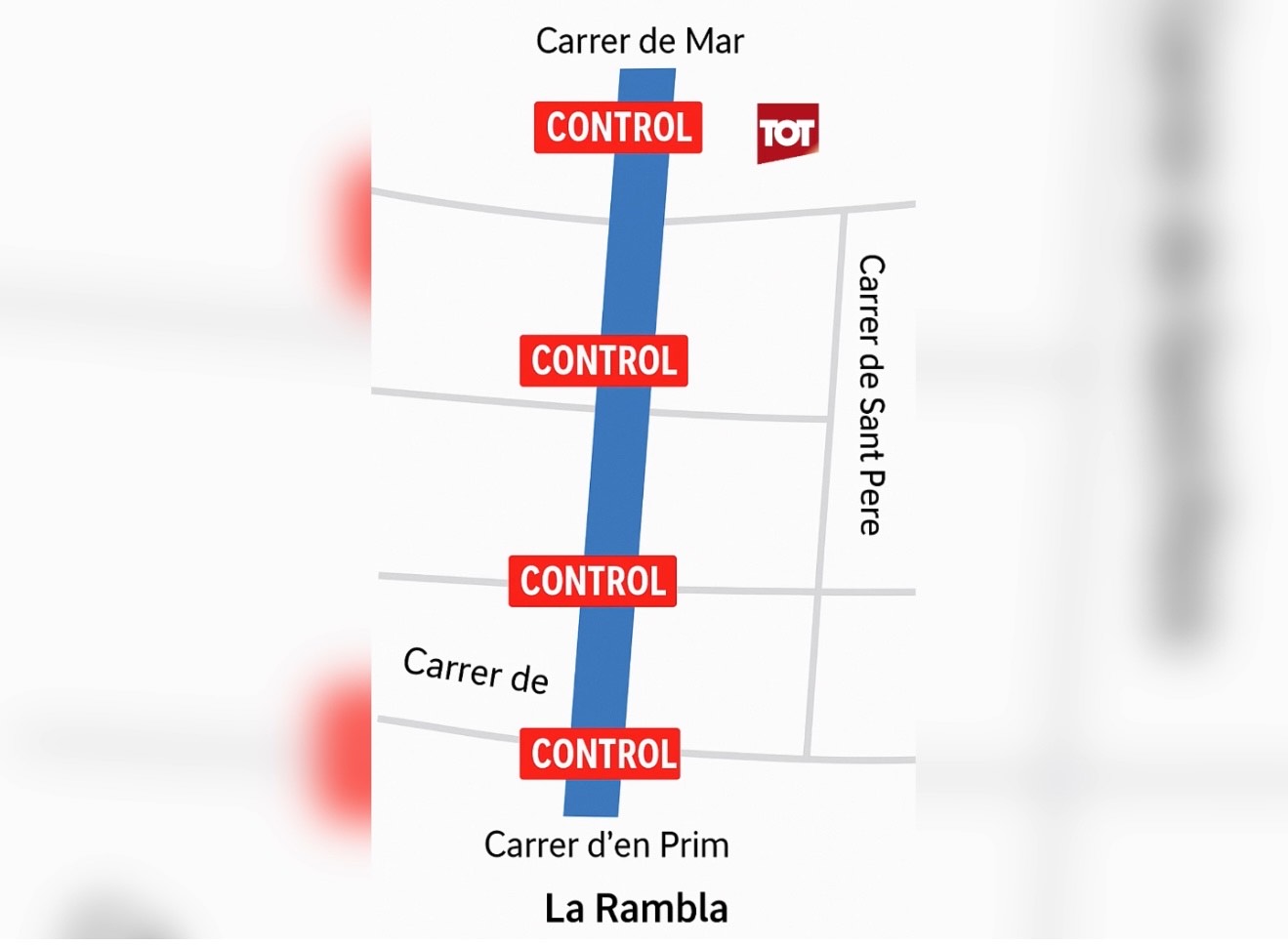Els controls es col·locaran als carrers adjacents a la Rambla, com el carrer de Mar, Canonge Baranera, Sant Francesc d’Assís, la Mercè, Sant Jaume, Carme o el mateix carrer d’en Prim, en un dispositiu molt semblant al que Mataró aplica a Les Santes des del 2017.