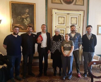 L’alcaldessa de Badalona, Dolors Sabater, juntament amb els representants de ProActiva Open Arms Òscar Camps i Ricardo Gatti, i els eurodiputats del grup GUE/NGL, Eleonora Forenza i Miguel Urbánm s’han reunit aquest matí a Nàpols amb l’alcalde de la ciutat italiana, Luigi de Magestris, amb qui han signat un manifest que apel•la a la solidaritat internacional per alliberar el vaixell de l’ONG badalonina, que es troba retingut a Sicília des del passat 18 de març a l’espera de la instrucció per part de la fiscalia italiana. Durant la trobada, De Magestris ha mostrat la seva solidaritat amb Open Arms i ha criticat a la Unió Europea per la seva política migratòria, tot fent una crida a la implicació de les “institucions democràtiques”.