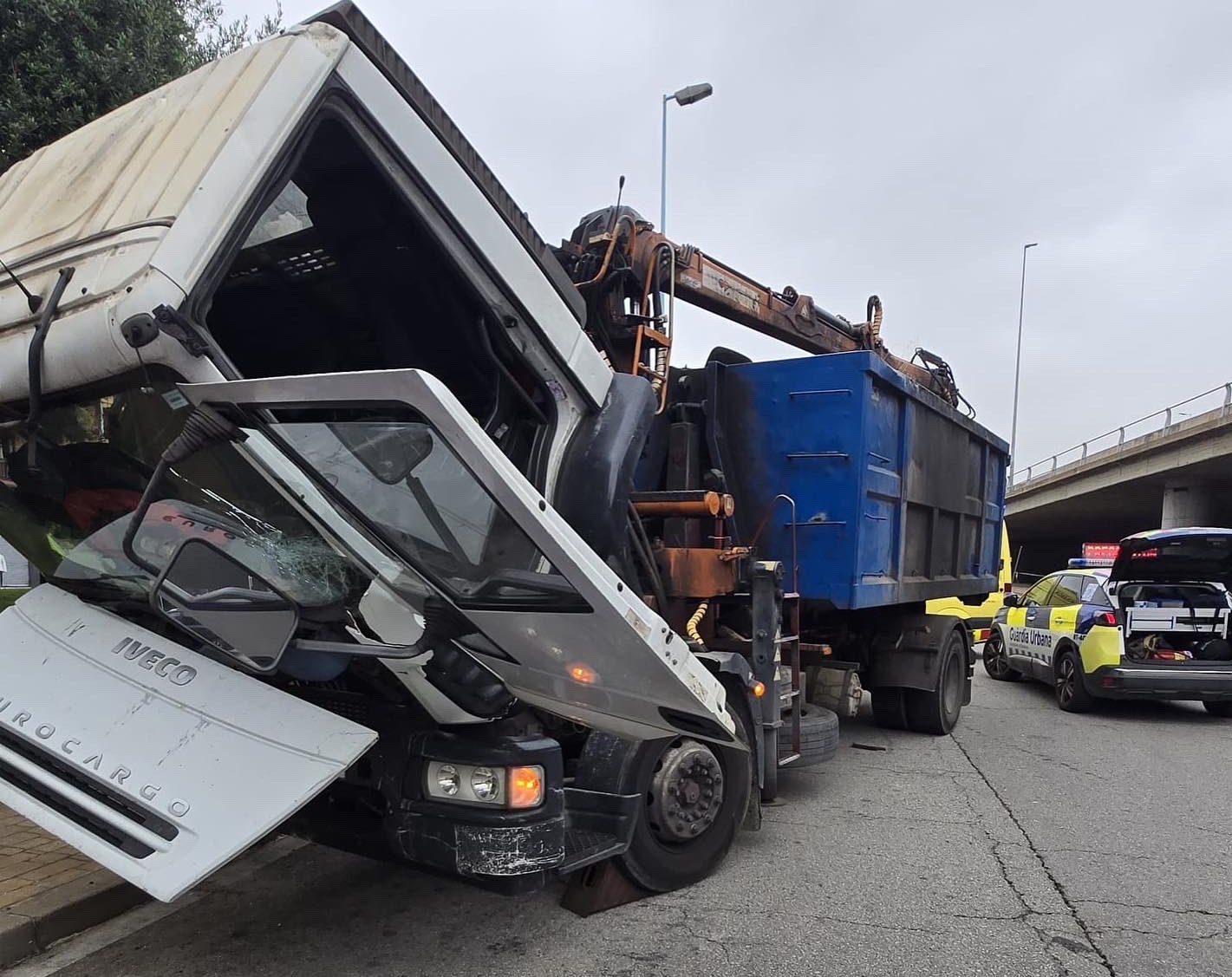 Un dels agents ha pujat a la cabina del camió per intentar controlar el vehicle, mentre l’altre ha creuat el cotxe patrulla per aturar-ne el recorregut. L’acció coordinada ha aconseguit frenar el camió, que finalment ha col·lidit contra el vehicle policial.